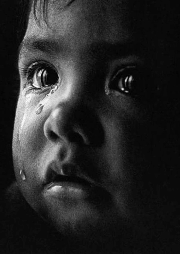 This is a pencil portrait of a crying baby....on A4 ivory sheet ....full charchole and carbon work .....