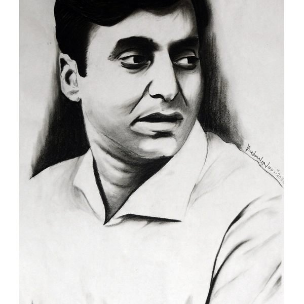 This is a pencil portrait of Soumitra Chatterjee on arto a4 size 180 gsm paper...full charchole work..
