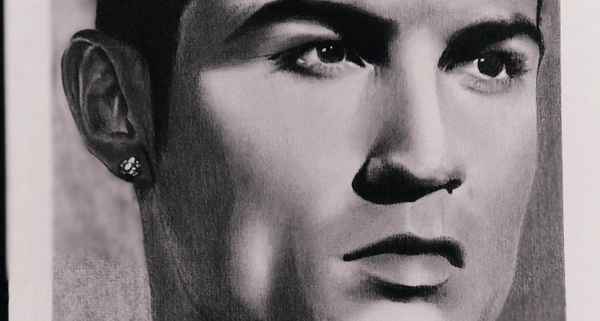 This is a pencil portrait of Ronaldo on arto a4 size 180 gsm paper.....fulll charchole and graphite work......